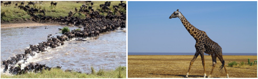 早餐后一路向北游猎至坦桑尼亚北部的马拉河边。东非的野生动物大迁徙经年累月地在这片草原上演。超过 200 万的迁徙大军将由南向北、再由北向南的大规模行进,每年的行程往往达到 3000 公里。每年 2 月、3 月大迁徙主要集中在塞伦盖蒂东南部的短草平原、之后前往塞伦盖蒂中部和西部的格鲁米提河流域、每年 7、8 月份迁徙大军将行进到塞伦盖蒂北部和肯尼亚的马赛马拉保护区,著名的“天国之渡”精彩场面就会在这段时间在马拉河两岸反复上演。而每年 10 月以后,徒步大军将由北向南胜利凯旋。我们这次主要辗转往返于北部马拉河边,见证角马过河的壮观场面。